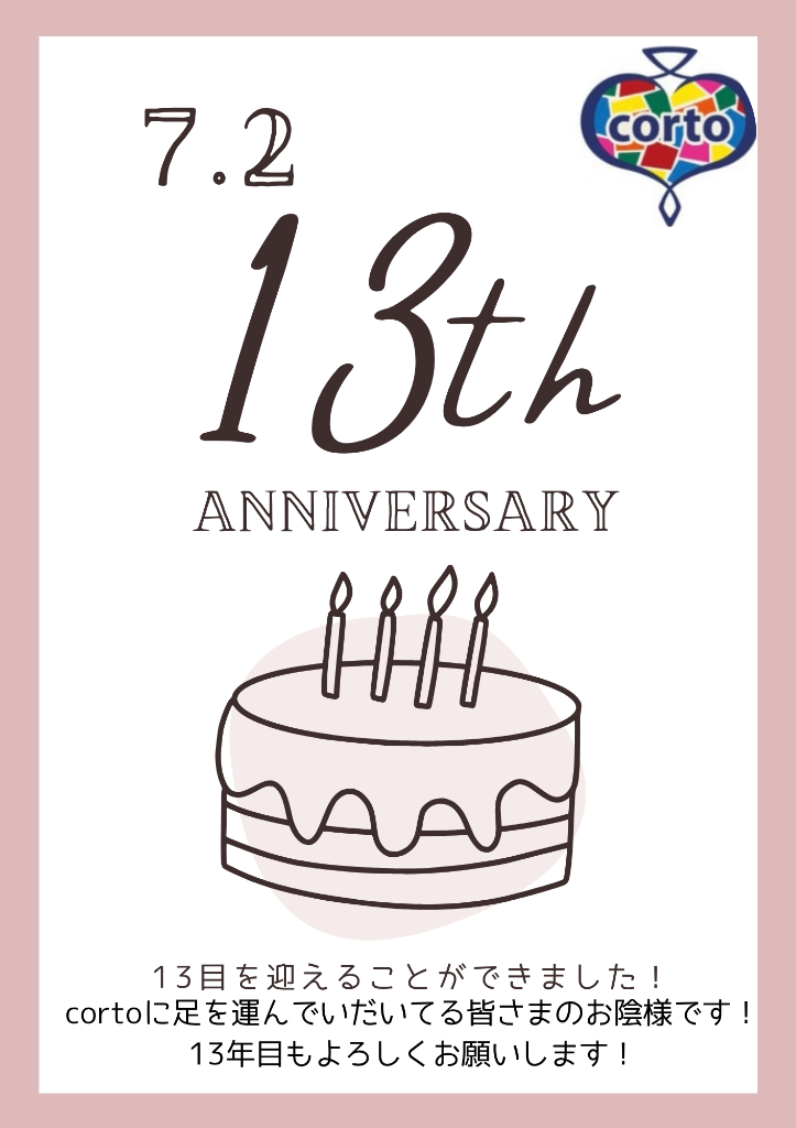 大阪住吉区のあびこにあるバリニーズが人気のリラクゼーションサロンcortoです。cortoに通っていただいてるお客さまのお陰様で、7月2日に13年目を迎えることができました(*≧∀≦*)ありがとうございます⭐︎サロンは見つけにくい場所にあり、広告など出してないにも関わらず、こんなに長く続けてこれるとは正直思ってもなかったです🥹これからも技術と接客を磨き、お客さまに愛されるサロンを目指します♪