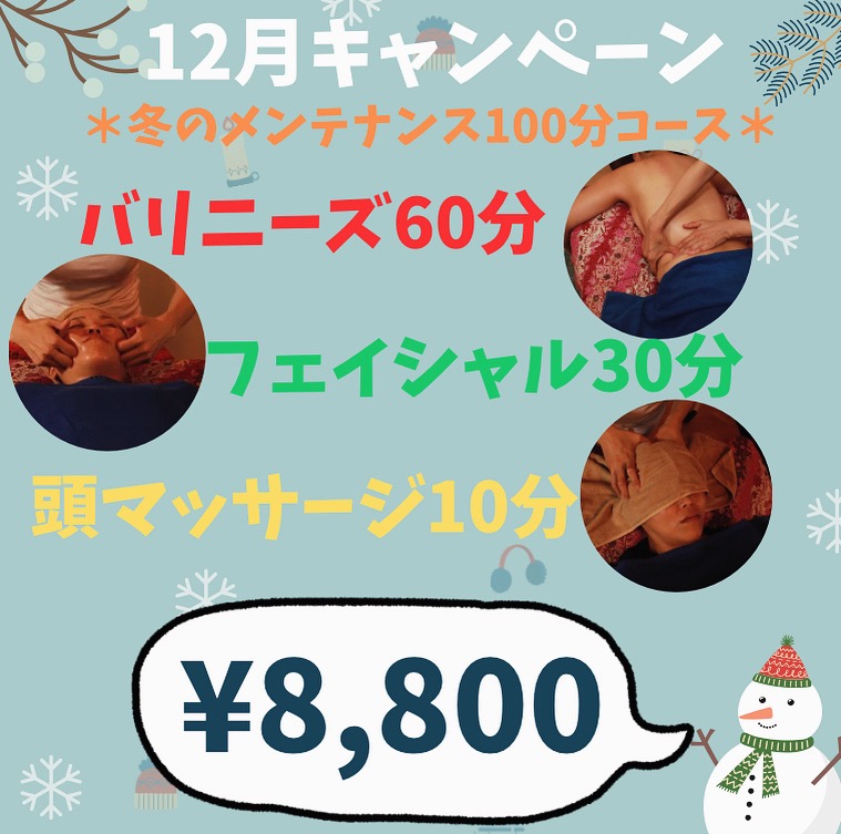 大阪住吉区のあびこにあるバリニーズが人気のリラクゼーションサロンcortoです。今年も残りわずかとなりました‼︎‼︎カラダのお疲れ、そして一気に寒くなったので寒暖差でのお肌の乾燥も気になられてると思います😌そんな悩みに対応した内容のキャンペーンをご用意しました(*´∀`*)是非、今年最後のサロンにcortoを選んでいただけると嬉しいです🥰