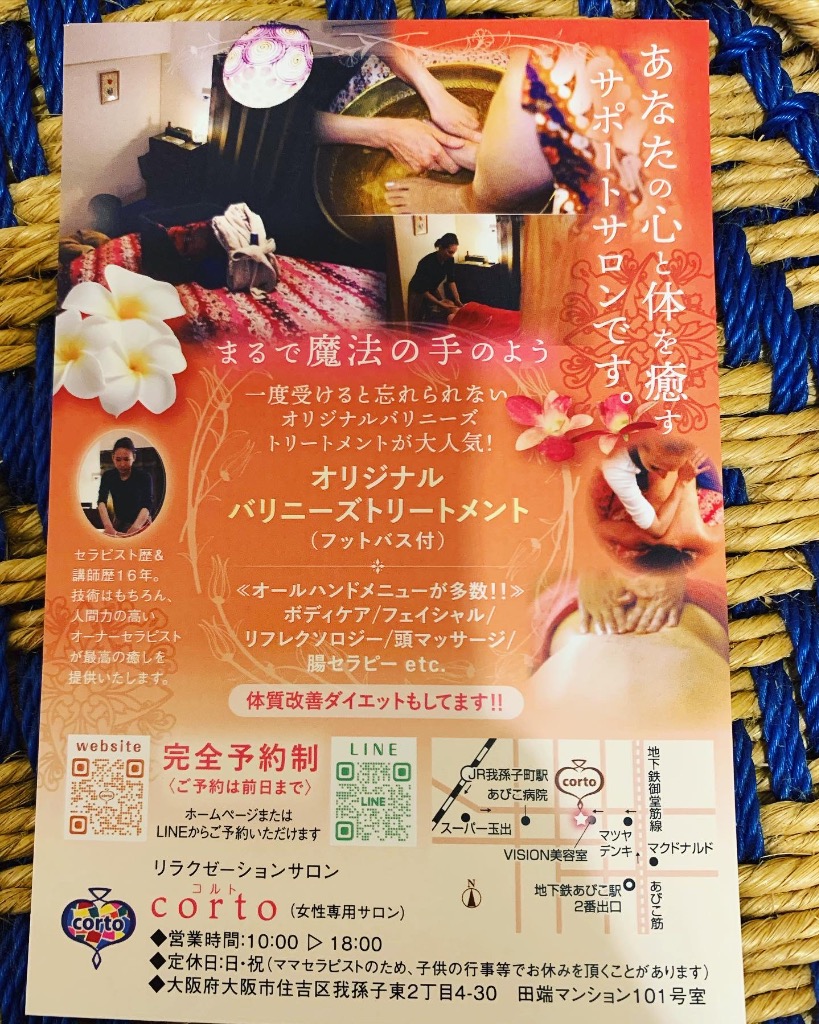 大阪住吉区のあびこにあるバリニーズが人気のリラクゼーションサロンcortoです